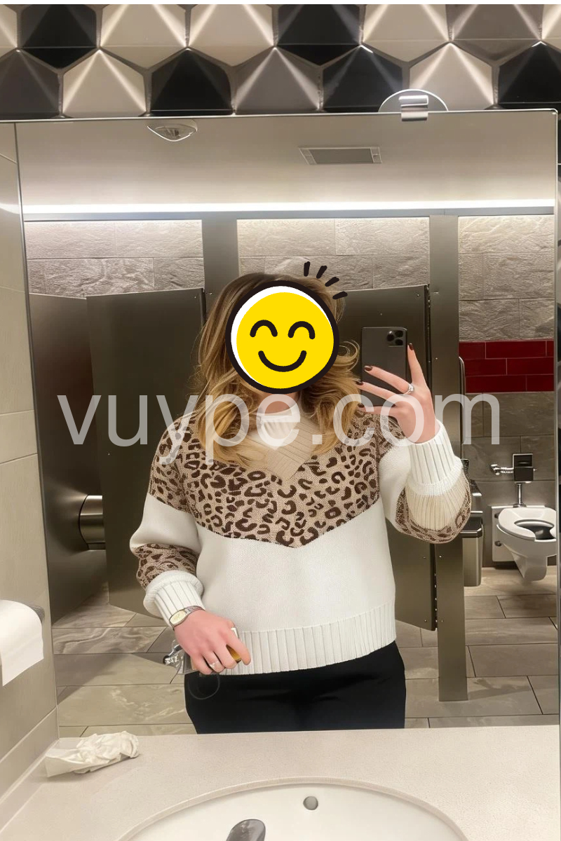 You can never have too many cozy sweaters. And when it’s this cute? You have to have it! Our newest pullover is colorblocked with a pop of leopard knit and styled with a crossover V-neckline and wide ribbed cuffs. It looks great with slim joggers and platform sneakers.