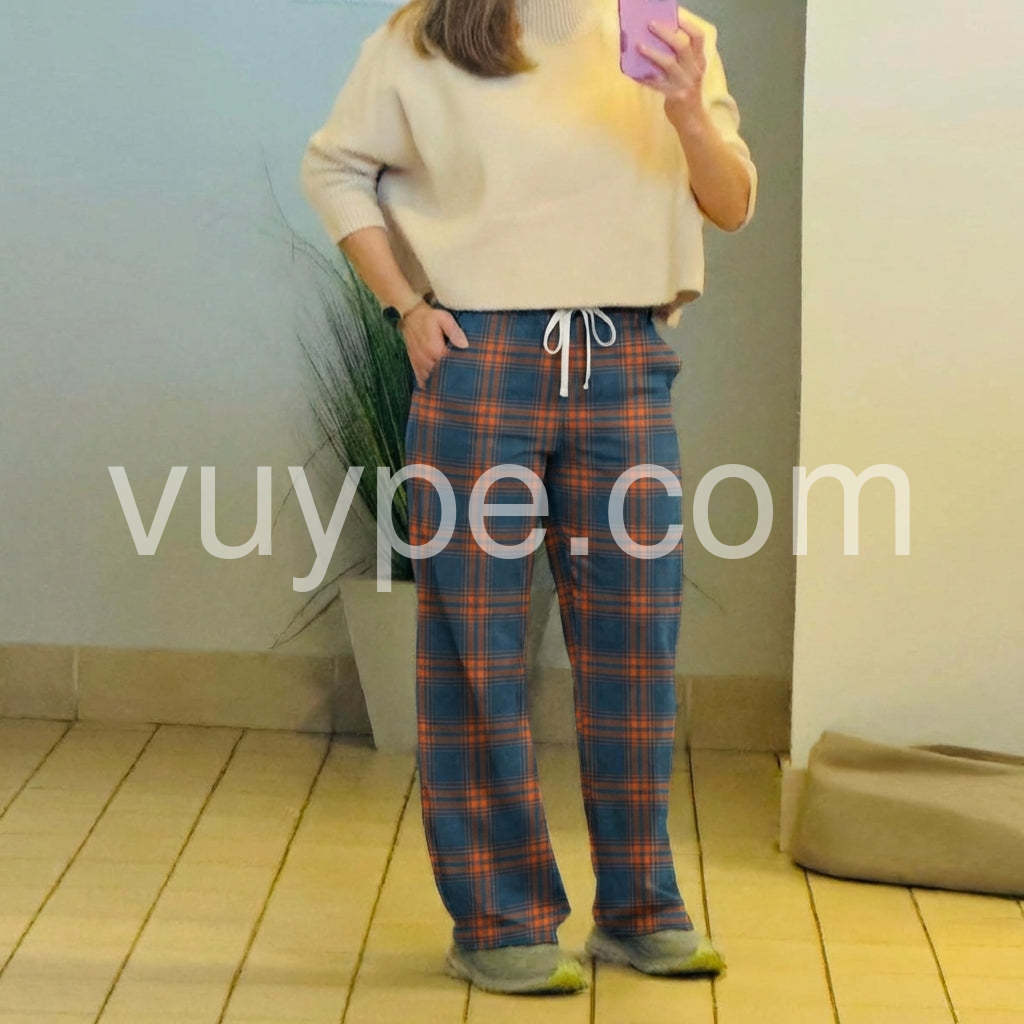 Casual Blue Check Side Pocket Pants