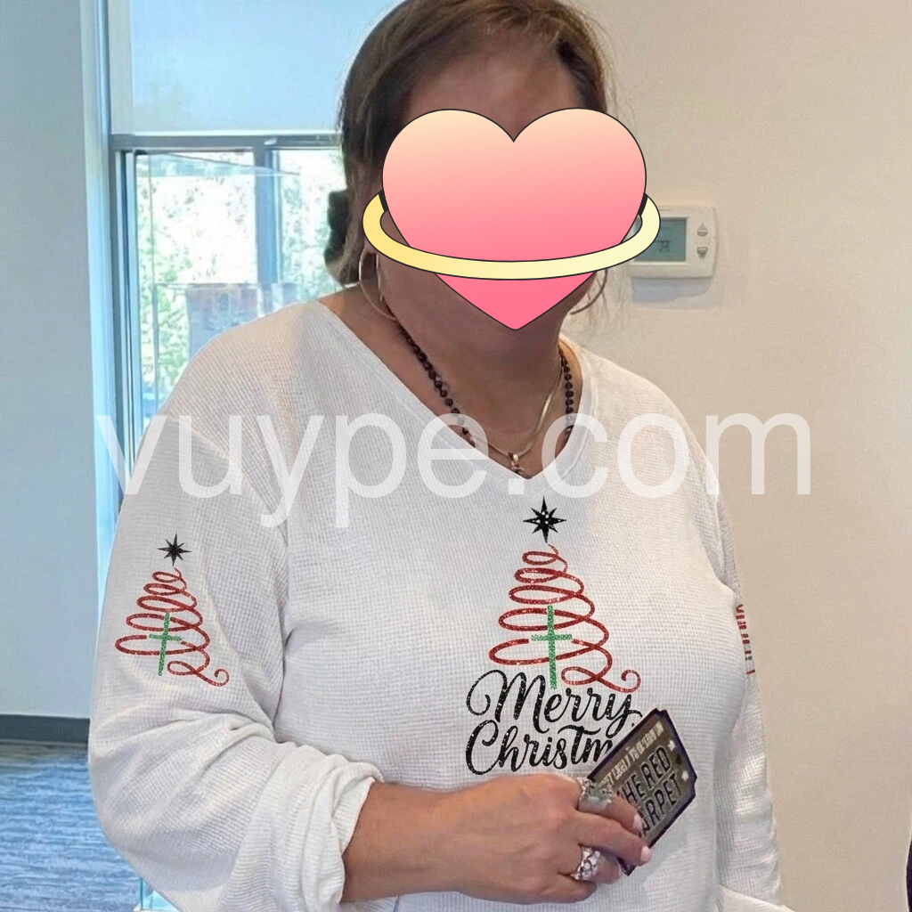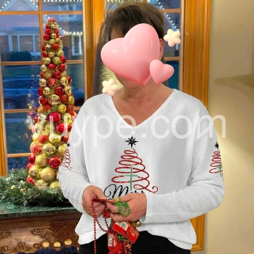 Elevate your holiday wardrobe with this versatile casual top featuring a charming Christmas tree print. The classic white base pairs effortlessly with your existing pieces, while the flattering V-neckline offers a refined silhouette suitable for both festive gatherings and everyday wear. The thoughtfully placed print adds seasonal character without overwhelming your look. Crafted for comfort and style, this piece transitions seamlessly from casual outings to holiday celebrations, making it an essential addition to your seasonal collection.