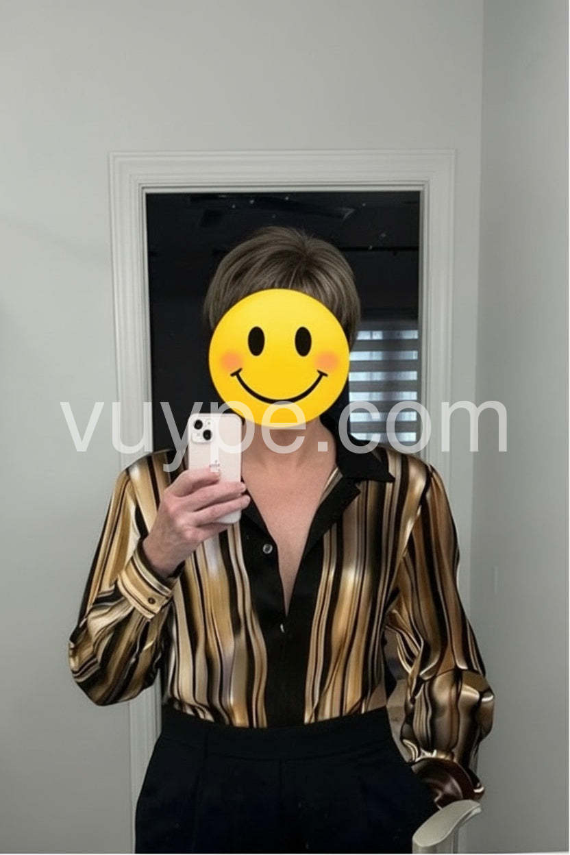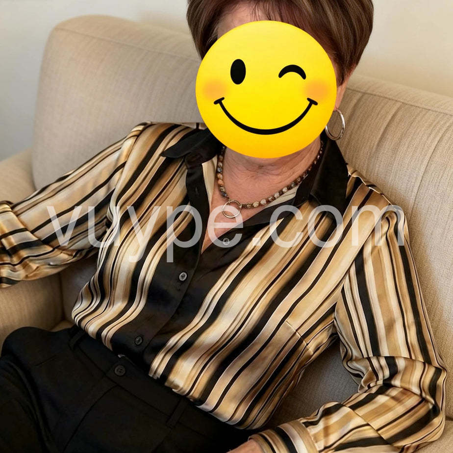 Elevate your wardrobe with this sophisticated striped satin blouse, crafted from luxurious fabric that drapes beautifully against the skin. The classic button-down silhouette offers timeless versatility, seamlessly transitioning from professional settings to evening occasions. Subtle stripes add visual interest without overwhelming your look, while the satin finish delivers an understated elegance. Perfect for layering or wearing solo, this piece pairs effortlessly with tailored trousers, skirts, or denim for a polished appearance that works season after season.