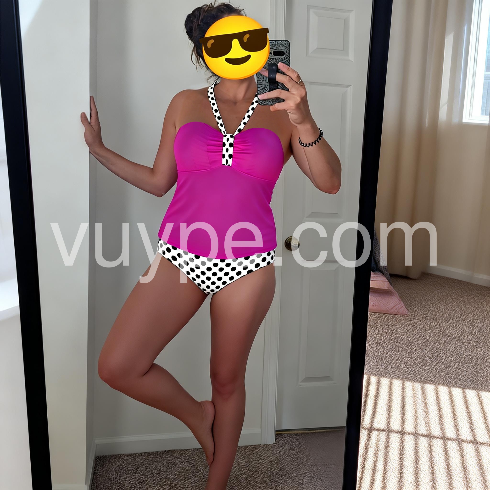 Showy Fuchsia Halter Polka Dot Swimwear