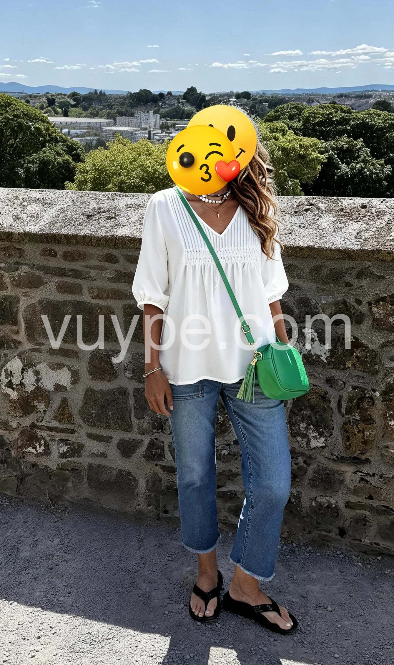 Elevate your everyday wardrobe with this timeless white V-neck top. Crafted from quality fabric, it offers a flattering silhouette that transitions seamlessly from casual to professional settings. The classic V-neckline provides a refined touch, while the plain design ensures versatile styling with virtually any piece in your closet. Perfect for layering or wearing solo, this essential staple delivers understated elegance and reliable comfort for year-round wear.