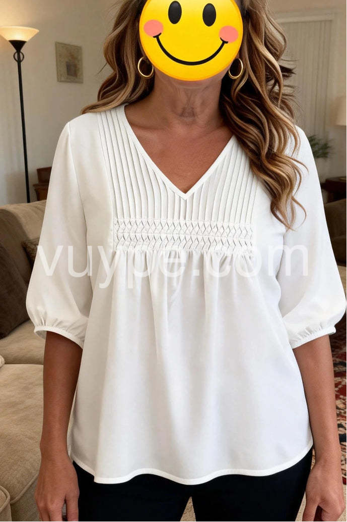 Classic White Plain V-Neck Top