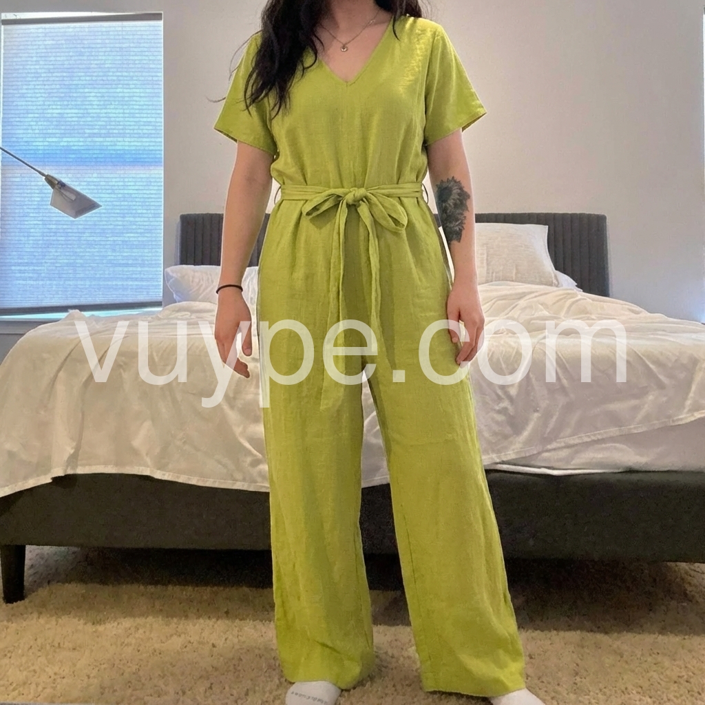 This versatile Green Plain Short Sleeve Jumpsuit is a must-have for any wardrobe. Made with high-quality, breathable fabric, it offers both comfort and style. The short sleeves provide a touch of elegance, making it perfect for any occasion. Elevate your fashion game with this chic jumpsuit.