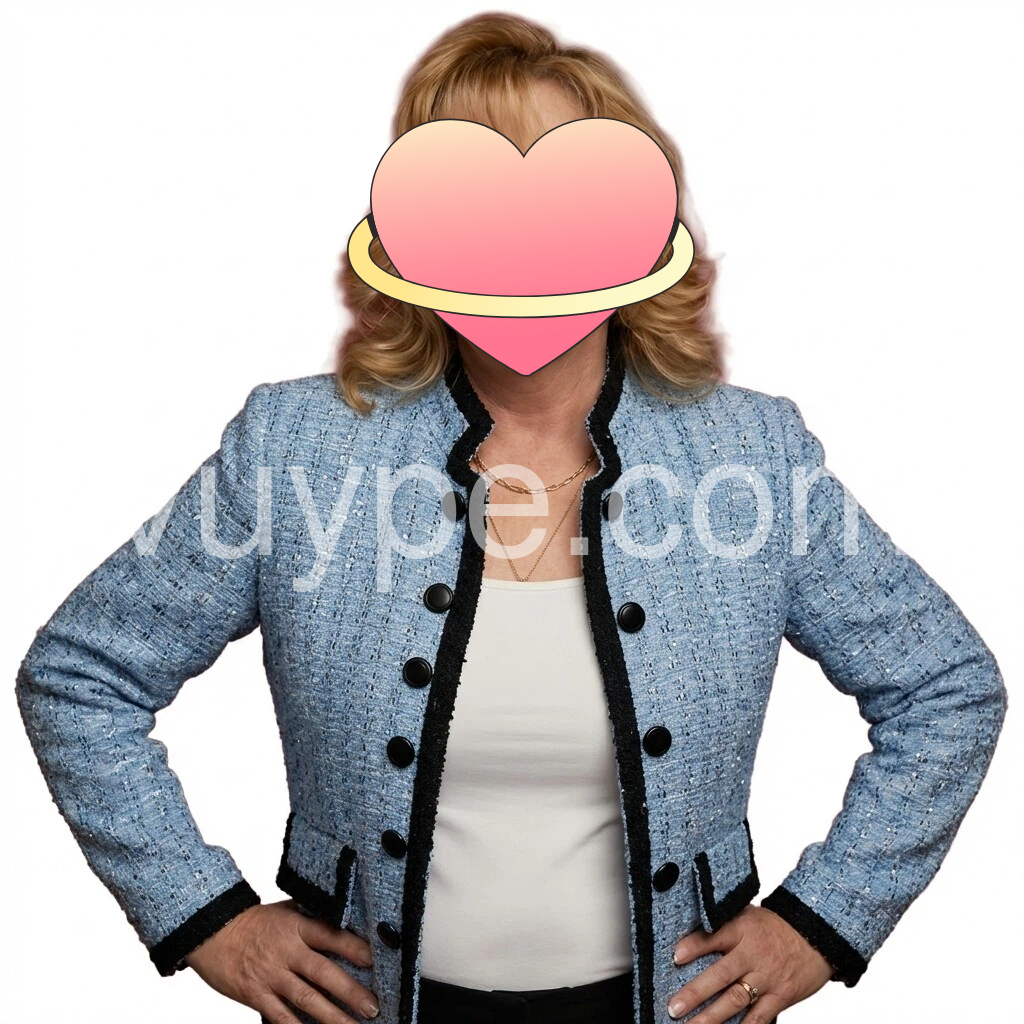 This blue tweed blazer features a refined black trim and a classic double-button closure, offering a sharp, tailored fit. Its textured fabric adds depth and sophistication, making it ideal for both professional settings and stylish casual wear. Designed to elevate your wardrobe with timeless elegance and structured silhouette.