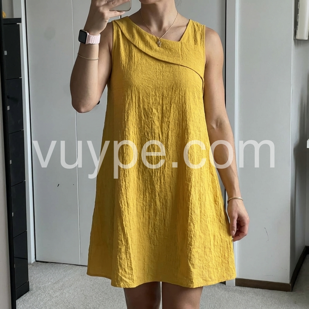 This stylish Yellow Sleeveless Plain Mini Dress is a must-have for any fashion-forward wardrobe. Made from high-quality materials, it features a vibrant yellow color, a flattering sleeveless design, and a versatile plain pattern. Perfect for any occasion, this dress is sure to make a statement and turn heads wherever you go.