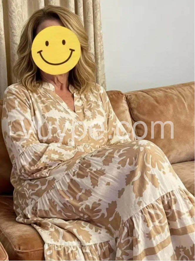 This elegant maxi dress features an attractive v-neck and 3/4 sleeves, making it a versatile and stylish addition to any wardrobe. The timeless design and flattering silhouette make it perfect for any occasion. Crafted with high-quality materials, it provides both comfort and style.