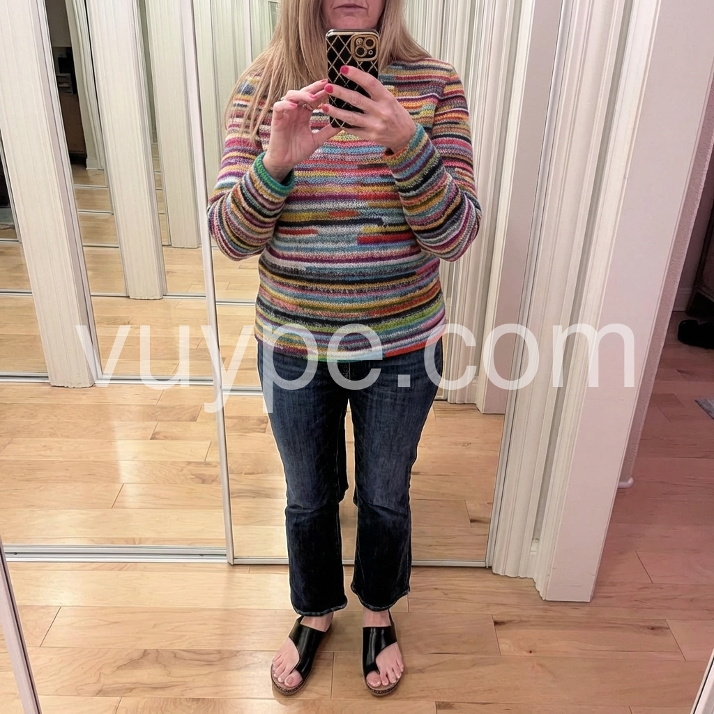 This sweater is perfect for the winter season. The unique striped pattern and long sleeves provide extra warmth and insulation to keep you comfortable. The fabric is lightweight and breathable for added comfort.
